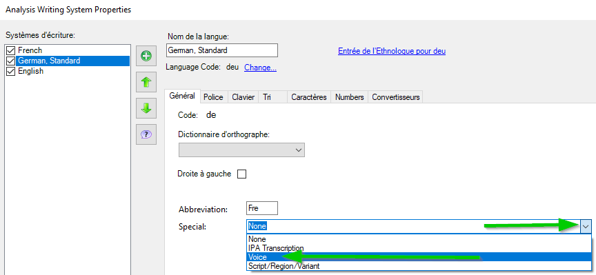 Dérouler ensuite la liste "Special" et choisir "Voice"