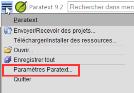 • Les options dans Paratext sont désormais appelées "paramètres Paratext".